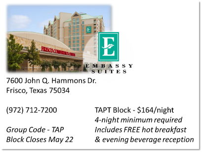 Complimentary breakfast Shuttle service Complimentary outdoor parking Registration link: Click HERE |